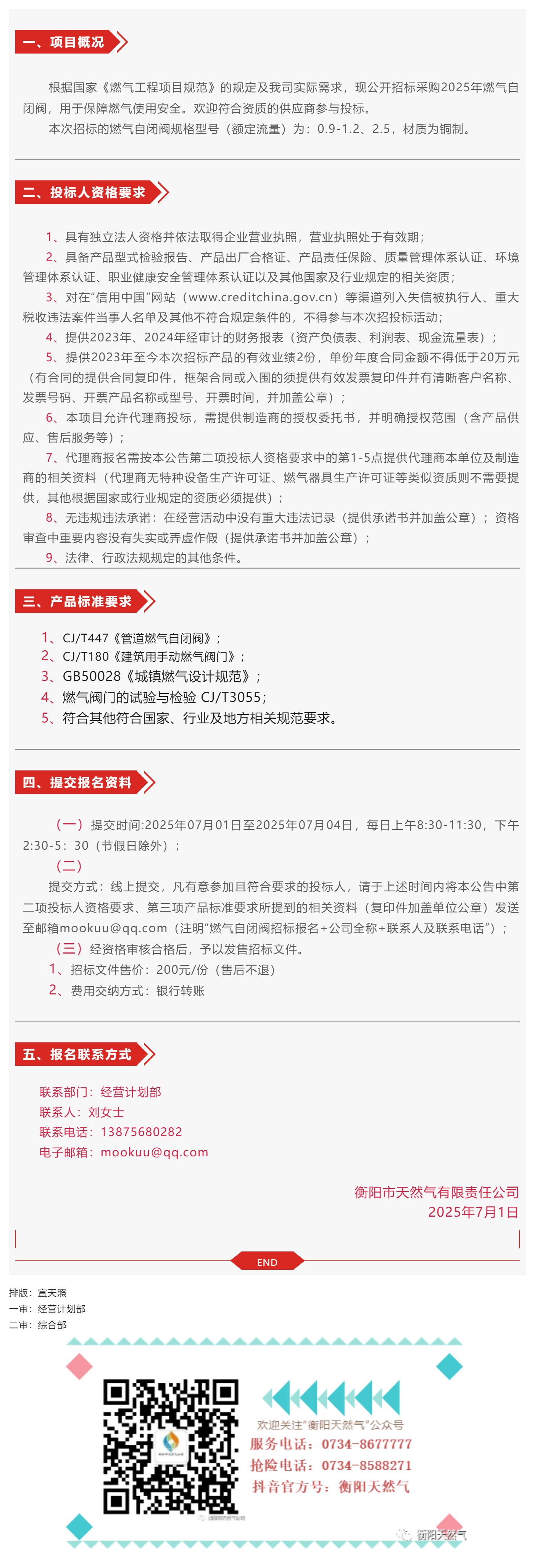 招標(biāo)公告丨衡陽(yáng)市天然氣有限責(zé)任公司2025年燃?xì)庾蚤]閥采購(gòu)入圍招標(biāo)公告