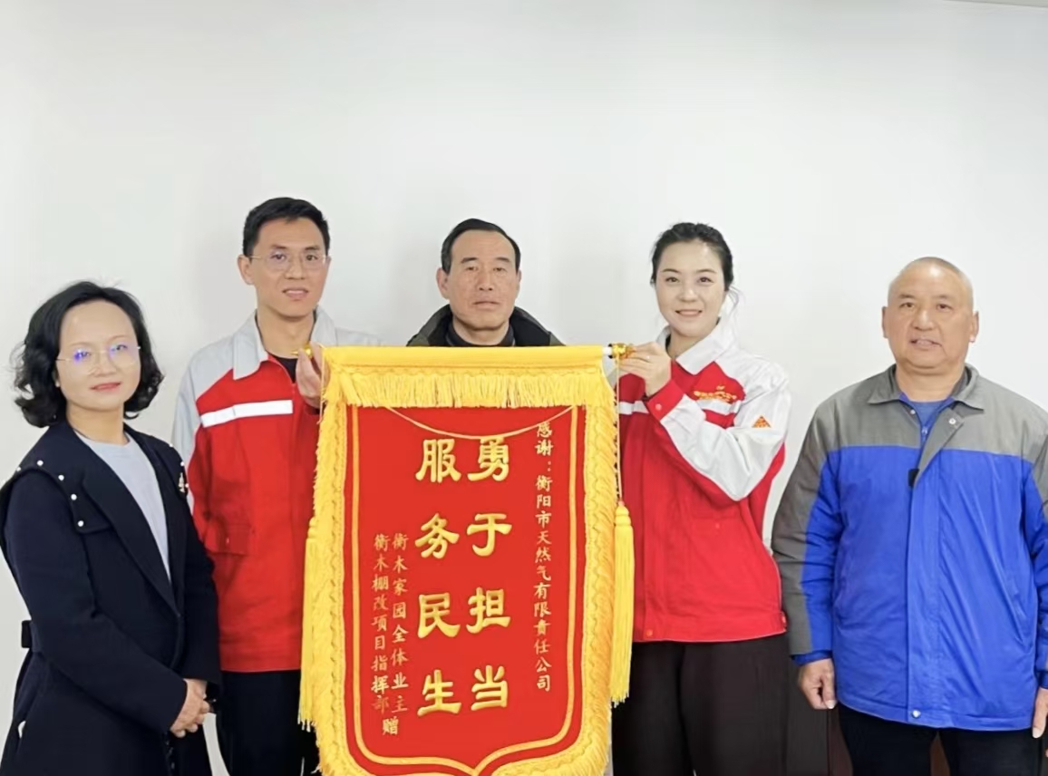 "再也不用扛著煤氣罐爬樓了!"12月15日,市天然氣公司辦公室暖意融融。衡木家園居民代表手持一面繡著"勇于擔當 服務民生"金色大字的錦旗,送到工作人員的手中,表達誠摯謝意。這份來自基層的特別禮物,見證了市天然氣公司與當地居民一道合力攻堅"瓶改管"的暖心故事。